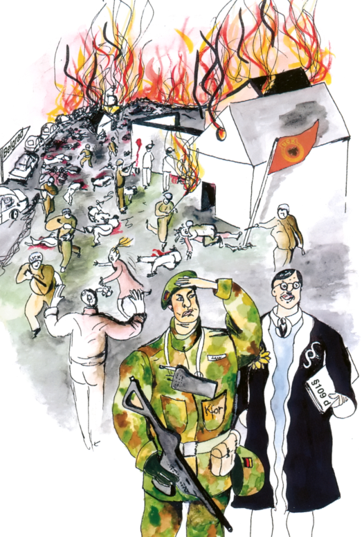 Am Freitag, den 23. April 1999, um 2.06 Uhr schlugen NATO-Präzisionsraketen in die Studios des Hauptsitzes des staatlichen serbischen Rundfunk- und Fernsehsenders RTS in Belgrad ein, der auch mehrere private Fernseh- und Radiosender beherbergte. Wie der NATO genau bekannt war (auch westliche Journalisten gingen in der Sendeanstalt ein und aus, allerdings nicht zur Angriffszeit), wurde dort wie immer in Nachtschicht gearbeitet; etwa 150 Personen befanden sich in dem Gebäude. Die Raketendetonation zertrümmerte mehrere Etagen. Mindestens 16 Menschen starben nach ersten Berichten. Etliche Journalisten und andere Medienmitarbeiter wurden tot oder lebendig an ihrem Arbeitsplatz begraben; noch tagelang suchten Rettungstrupps nach Verschütteten, die sich teilweise mit Mobiltelefon zu melden versuchten. »Journalisten vor Ort«, berichtete die ›New York Times‹ am 23. April, »sahen die Leiche eines – fast geköpften – Mannes, die aus den Trümmern hing. Sie bemerkten einen anderen Mann, der zwischen zwei mächtigen Betonblöcken eingeklemmt war. Ärzte amputierten ihm an Ort und Stelle beide Beine, um ihn aus dem Schutt zu befreien. Er wurde sofort in ein Krankenhaus gebracht, wo er nach Medienangaben starb.« »Die atlantische Allianz«, beginnt der Korrespondent von ›El Mundo‹, Julio Fuentes, seinen Bericht in der Samstagsausgabe seiner Zeitung, »feierte gestern ihren 50. Geburtstag mit einer unverantwortlichen Kriegshandlung gegen ein ziviles Kommunikationsmedium, mit der, ebenso wie die Meinungsfreiheit, zehn im öffentlichen Dienst beschäftigte Mitarbeiter des Rundfunks und Fernsehens von Serbien (RTS) getötet wurden, wie der staatliche Sender in einer ersten, vorläufigen Bilanz mitteilte.« Neben seinem Bericht das Photo eines Opfers, ein Mann mit blutüberströmtem Gesicht auf einer Bahre, der von einem Sanitäter versorgt wird. Die Schlagzeile unter dem Bild: »Pressevereinigungen verurteilen das Bombardement scharf.« Im dazugehörigen Artikel wird die Internationale Journalistenvereinigung (IFJ), eine Dachorganisation von Journalistengewerkschaften und -verbänden in der ganzen Welt, mit den Worten zitiert, der Bombenangriff sei »der Bruch eines Versprechens, der das Leben aller Journalisten und Medienmitarbeiter bedroht«. Die Vereinigung des Niederländischen Rundfunks sandte ein Protestschreiben an den niederländischen Verteidigungsminister, und die Nationale Gewerkschaft britischer Journalisten verurteilte den Angriff als »barbarisch«.