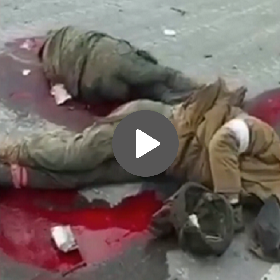 Übersetzung des Gesprochenen im Video:(Unverständliches Gerede, während sich der Kameramann einem Gefangenen nähert. Männer in Flecktarn liegen und manche sitzen mit ausgestreckten Beinen auf Betonplattenboden im Freien, viele haben Blutflecke auf der Uniform. Andere Männer in Flecktarn, bewaffnet, gehen umher.)